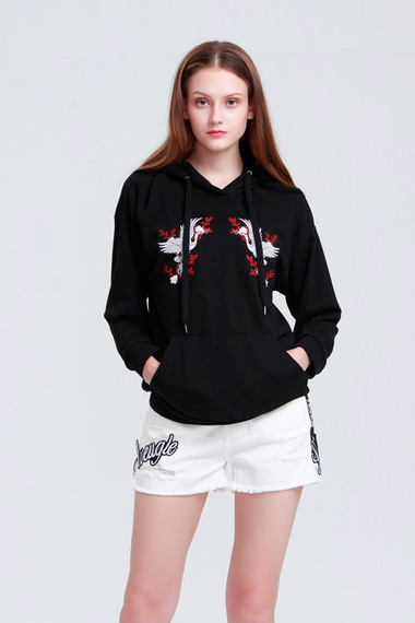 Фото товара 15163, свободная толстовка с капюшоном и вышивкой журавли
