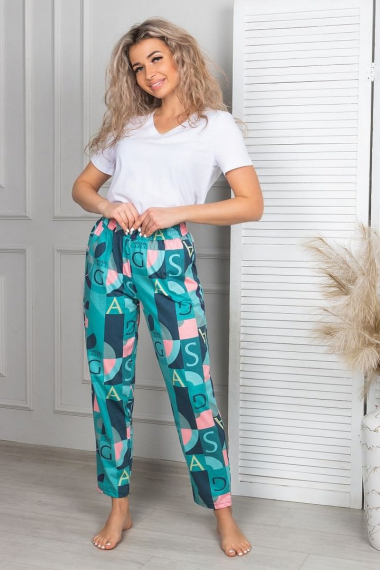 Фото товара 23187, хлопковые зеленые брюки с карманами